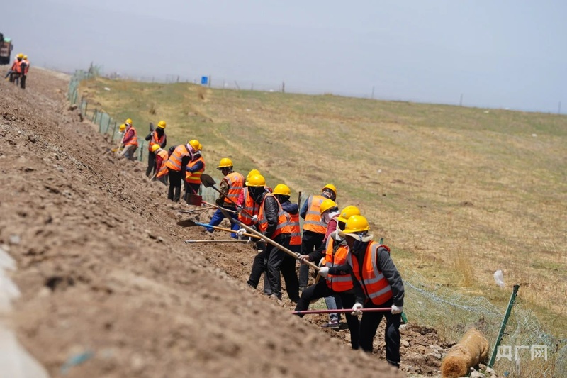 根据当地气候条件,施工人员对公路边坡进行整平后,按一定比例混播了中华羊茅、青海草地早熟禾、垂穗披碱草、短芒披碱草、麦冰草等5种草籽,通过铺设植被纤维毯、定时洒水等方式,细心呵护草籽成长,目前已累计实施边坡绿化38万平方米。